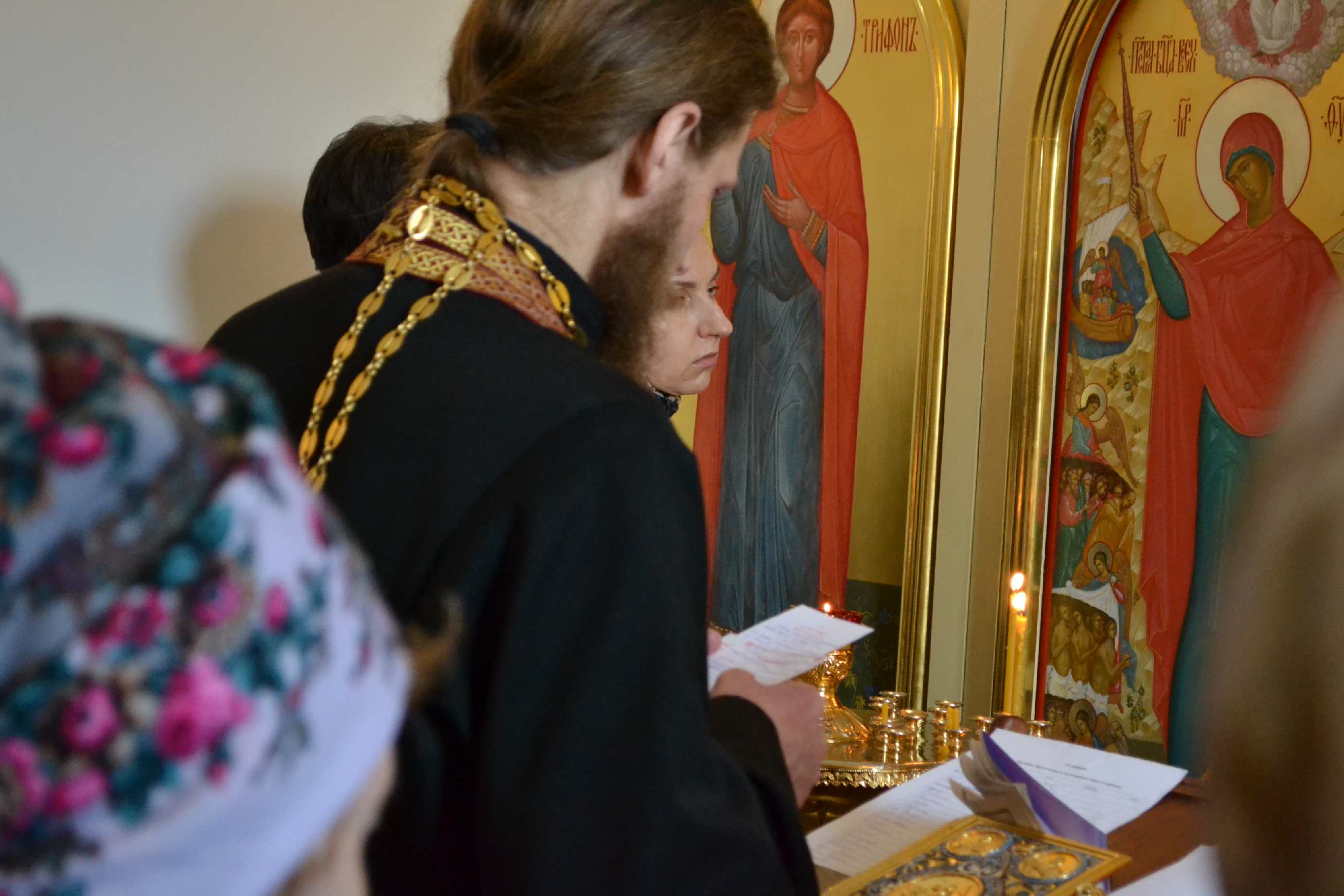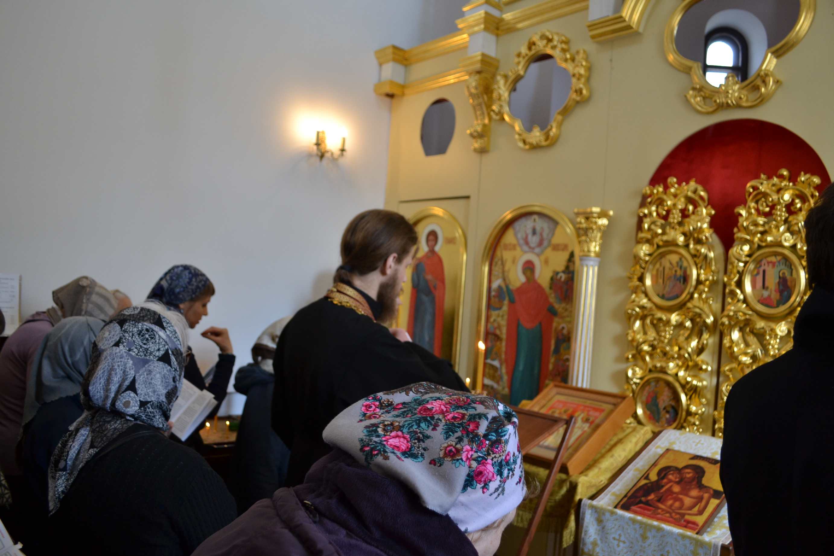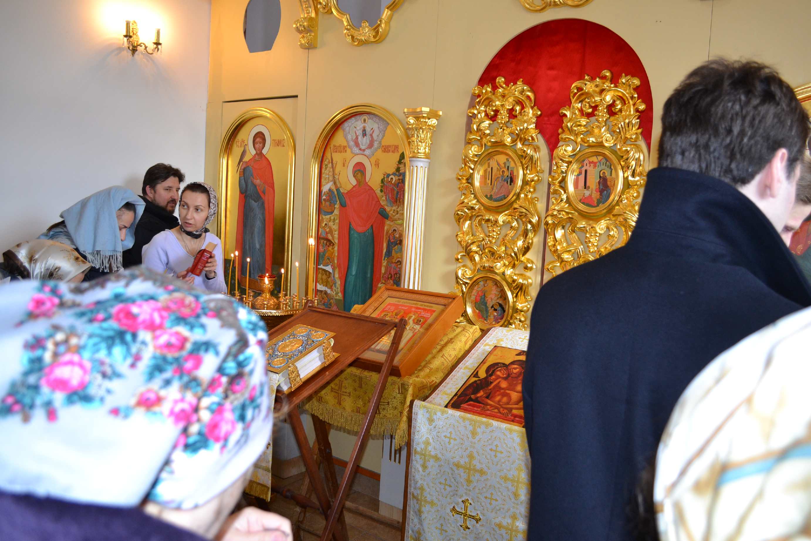 После пения акафиста прихожане с благоговейным трепетом вслушивались в слова Святого Евангелия от Марка, повествующего о страстях Христовых, и после сугубой ектении, вместе с отцом-настоятелем, коленопреклонённо возносили свои молитвы к Богу и благодарили Его.