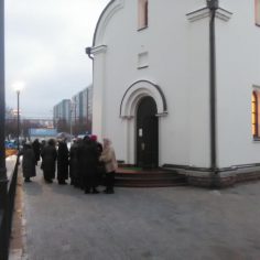 Сегодня Святая Православная Церковь отмечает праздник святителя Спиридона Тримифунтского. За традиционным молебном с акафистом прихожане строящегося храма обращались с молитвами к Царственным страстотерпцам и святителю Спиридону, просили наших небесных заступников даровать здравие и благополучие нам и нашим близким, укрепить нашу веру и надежду и подать благодатную помощь в богоугодном деле строительства нового храма Святым Царственным Страстотерпцам. Молящиеся прикладывались с благоговением к иконам и получили Божие благословение, совершив помазание.