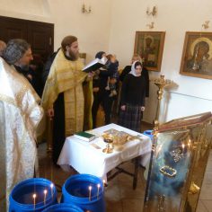 Ему сослужил клирик храма Святых Первоверховных Апостолов Петра и Павла в Ясеневе, подворья Введенской Оптиной Пустыни, протоиерей Сергий Ишков.