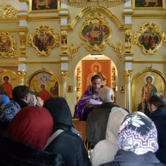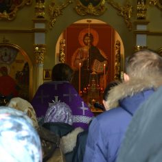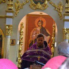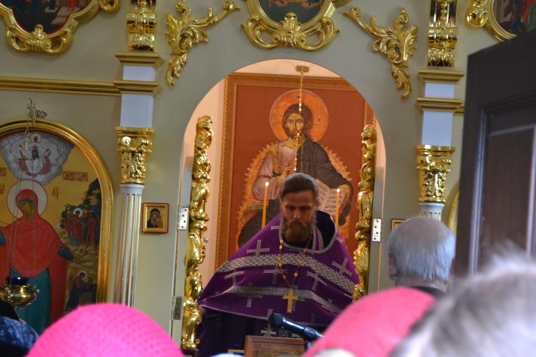 После прочтения коленопреклоненной молитвы отец-настоятель обратился к прихожанам с проповедью о значении совершенного богослужения.