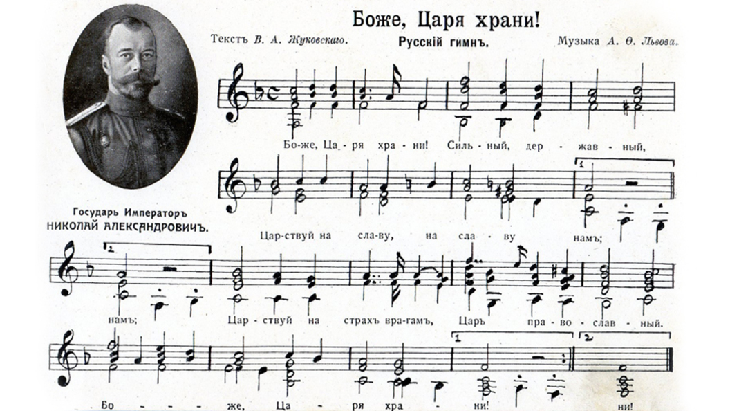До XIX века у России не было гимна, в торжественных случаях исполнялся английский гимн «Боже, спаси Короля!». В 1833 году Император Николай I поручил композитору А. Ф. Львову создать русский гимн. Словами гимна являются стихотворение В. А. Жуковского, которое впервые было напечатано в журнале «Сын отечества» за 1815 год и называлось «Молитва русских».