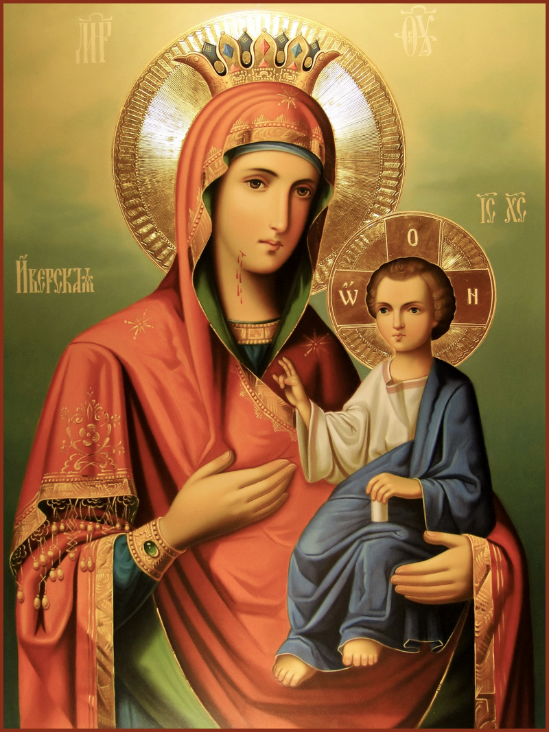 Иверская икона Божией Матери, находящаяся на Афоне, прославилась многими чудесами. Слух о чудотворном образе через паломников распространился по России. Святейший Патриарх Никон (тогда еще Новоспасский архимандрит) обратился к архимандриту Иверского Афонского монастыря Пахомию (который прибыл в Москву за милостыней для афонских обителей) с просьбой прислать список с чудотворной Иверской иконы Пресвятой Богородицы. Афонский инок Иамвлих написал копию с Иверского образа, и через год икона, в сопровождении афонских монахов, прибыла в Москву. 13 октября 1648 года она была торжественно встречена жителями столицы. Великая святыня Русской Православной Церкви Московская Иверская икона прославлена от Господа многими чудесами.