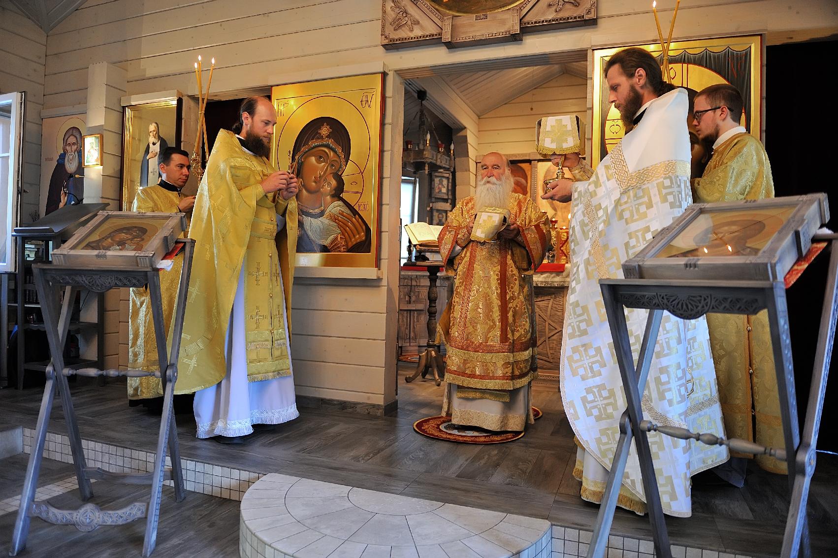 После Богослужения настоятель храма иерей Димитрий Бабурин обратился к Его Преосвященству, выразив благодарность за радость совместного Богослужения и общей молитвы. Епископу Феофилакту от настоятеля и прихожан храма был преподнесён букет цветов.