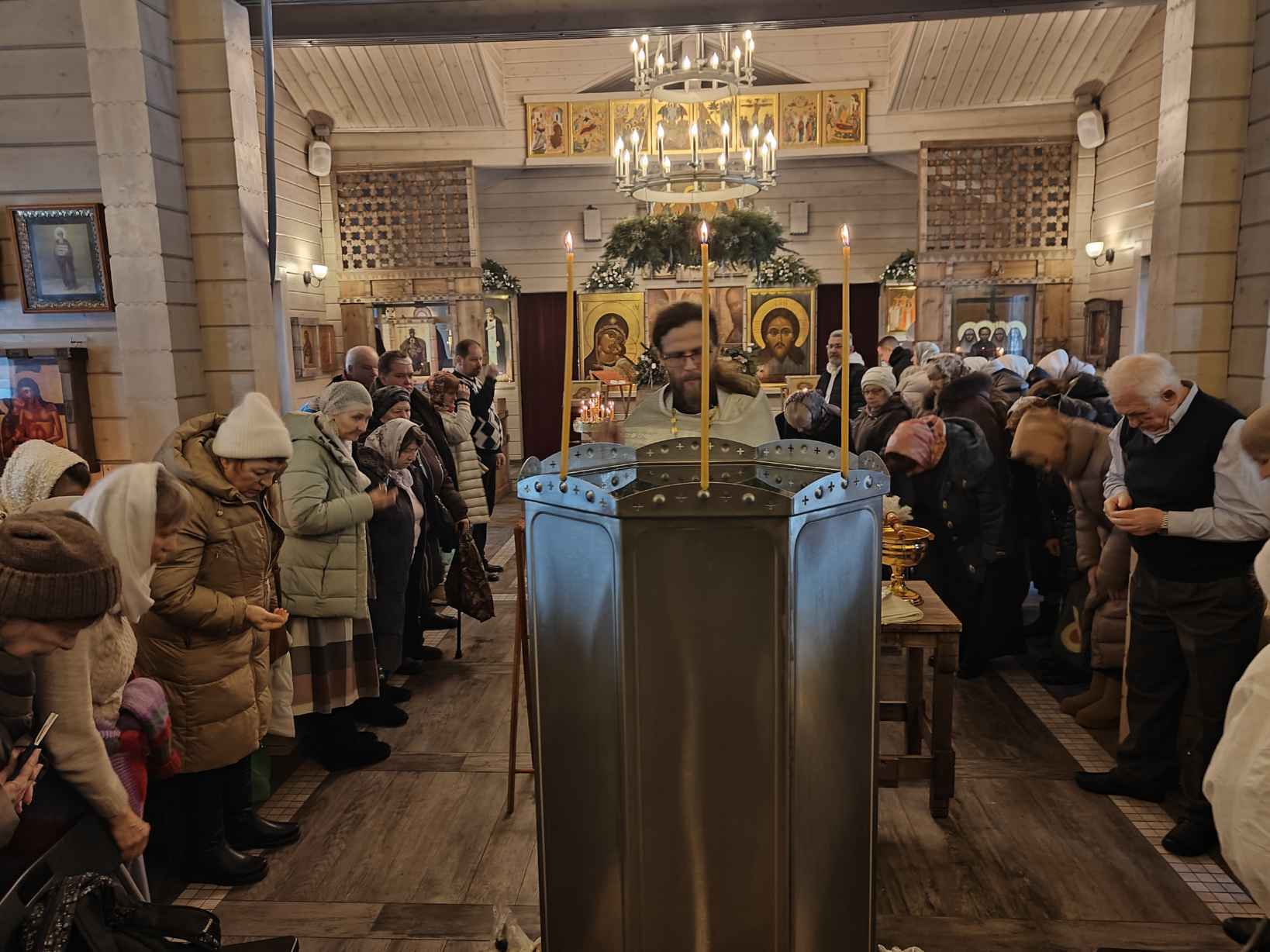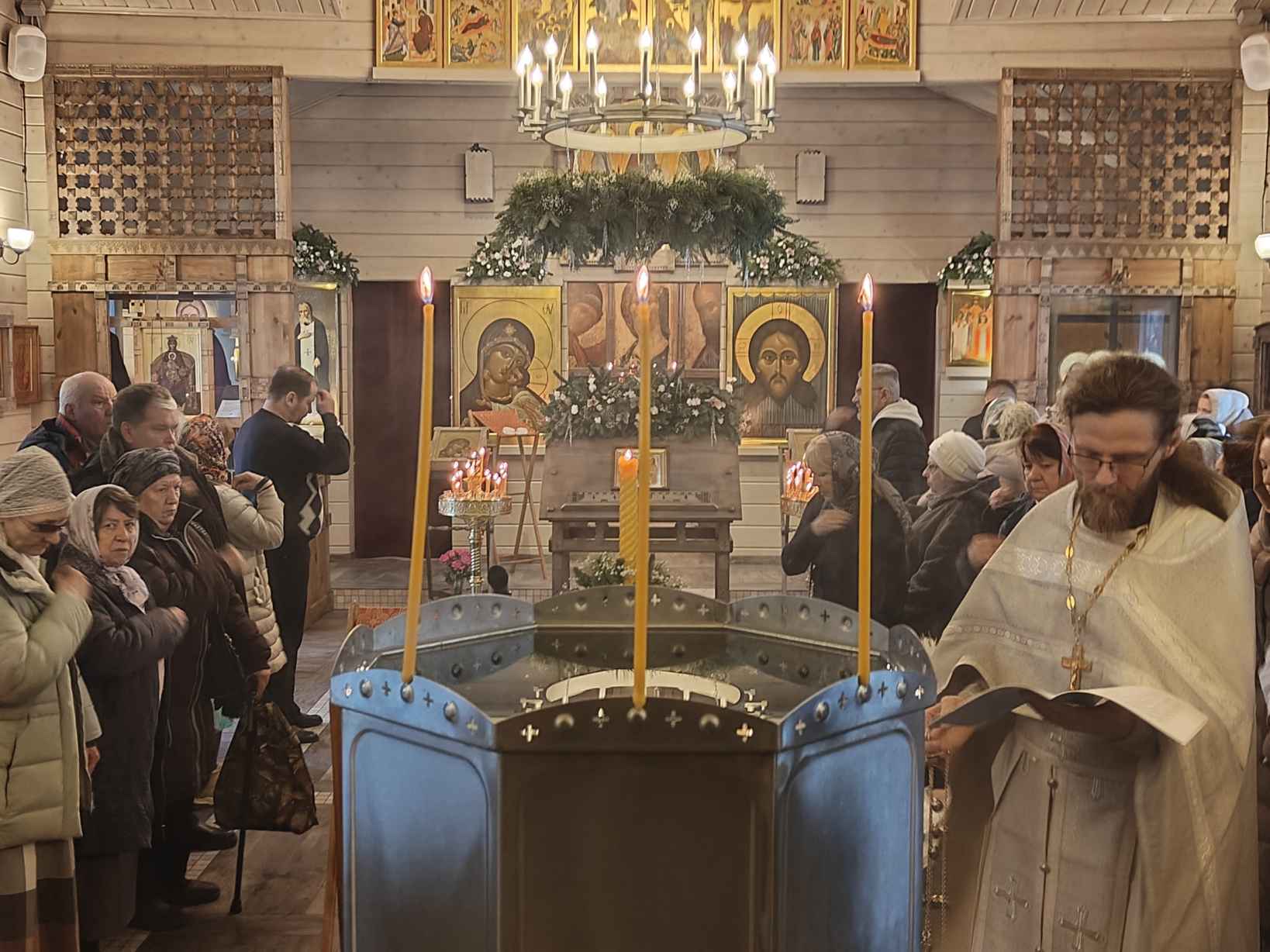 В праздник Святого Богоявления — Крещения Господа Бога и Спаса нашего Иисуса Христа, 19 января 2026 года, в храме Святых Царственных Страстотерпцев в Ясеневе была совершена торжественная Божественная литургия. Богослужебный суточный круг в Церкви начинается накануне, поэтому встречать праздник верующие начали на вечернем богослужении 18 января, в крещенский сочельник. Богослужение возглавил настоятель храма, иерей Димитрий Бабурин. Песнопения в эти святые дни исполнил хор храма, создавая особую атмосферу молитвенного единения и духовной радости. Во время мирной и сугубой ектений были вознесены молитвы о Российском воинстве и о мире. Особым моментом богослужения стало соборное славление перед иконой праздника, в котором приняли участие все присутствующие. По окончании Божественной литургии настоятель храма совершил чин Великого освящения воды. Великое водоосвящение (освящение святой воды) в храме происходило 18 и 19 января, такую святую воду принято называть крещенской.  Святой водой были окроплены все молящиеся, что символизировало очищение и обновление души, а также напоминало о великом событии Крещения Господа нашего Иисуса Христа в водах Иордана.