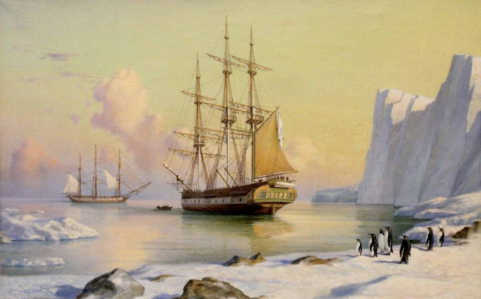 К этому времени они имели опыт кругосветных путешествий, а победа в войне с НАПОЛЕОНОМ позволила роcсийским адмиралам внушить царю АЛЕКСАНДРУ I мысль о том, что настала пора совершить подвиг и ради науки. Были организованы две экспедиции — в Арктику и Антарктику. Отправленные на Север шлюпы «Открытие» и «Благонамеренный» были затерты льдами, а южную экспедицию ждал большой успех. Руководить ею должен был капитан 1-го ранга Макар РАТМАНОВ, но из-за его болезни всю подготовку к плаванию вел Лазарев. За 2 месяца до отплытия начальником экспедиции назначили Беллинсгаузена. Оба шлюпа были построены русскими мастерами, их экипаж составляли 117 человек на «Востоке» и 73 на «Мирном». В плавание отправились 16 июля 1819 года. Дания, Англия, Бразилия, а оттуда — прямо на юг.